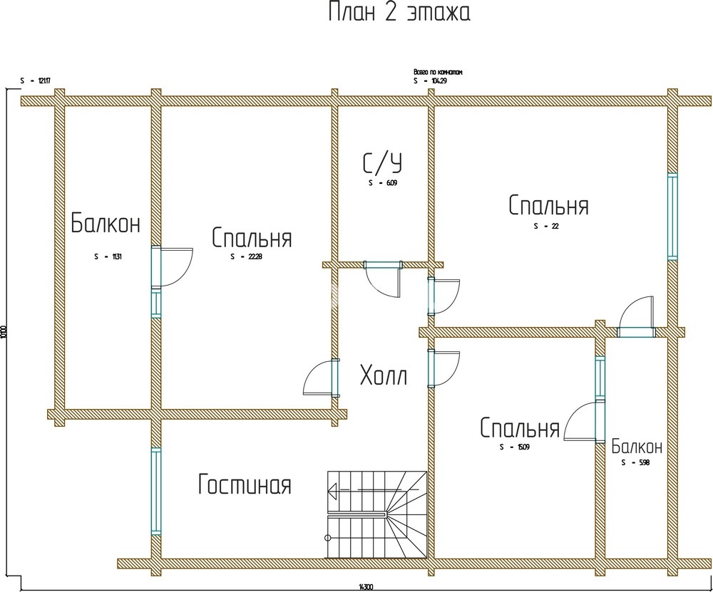 Площадь 2 этажа: 100 м