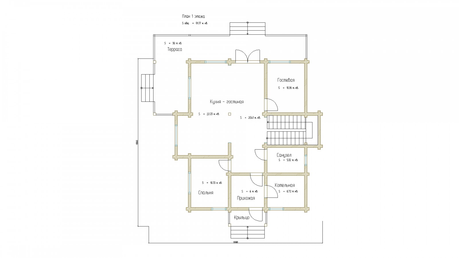 Площадь 1 этажа: 81.37 м