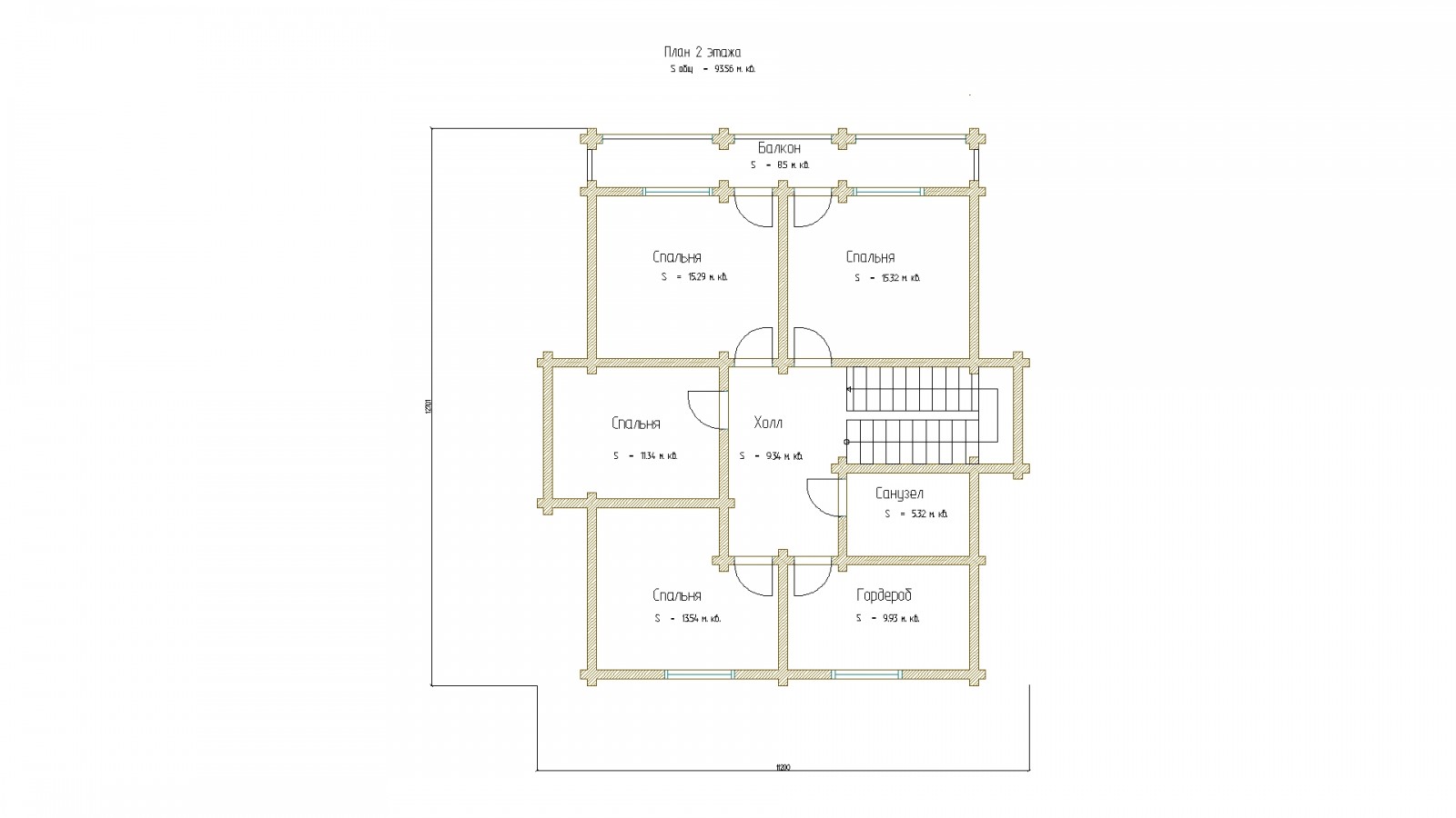 Площадь 2 этажа: 93.56 м