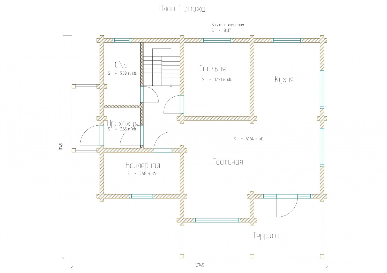 Площадь 1 этажа: 81.17 м
