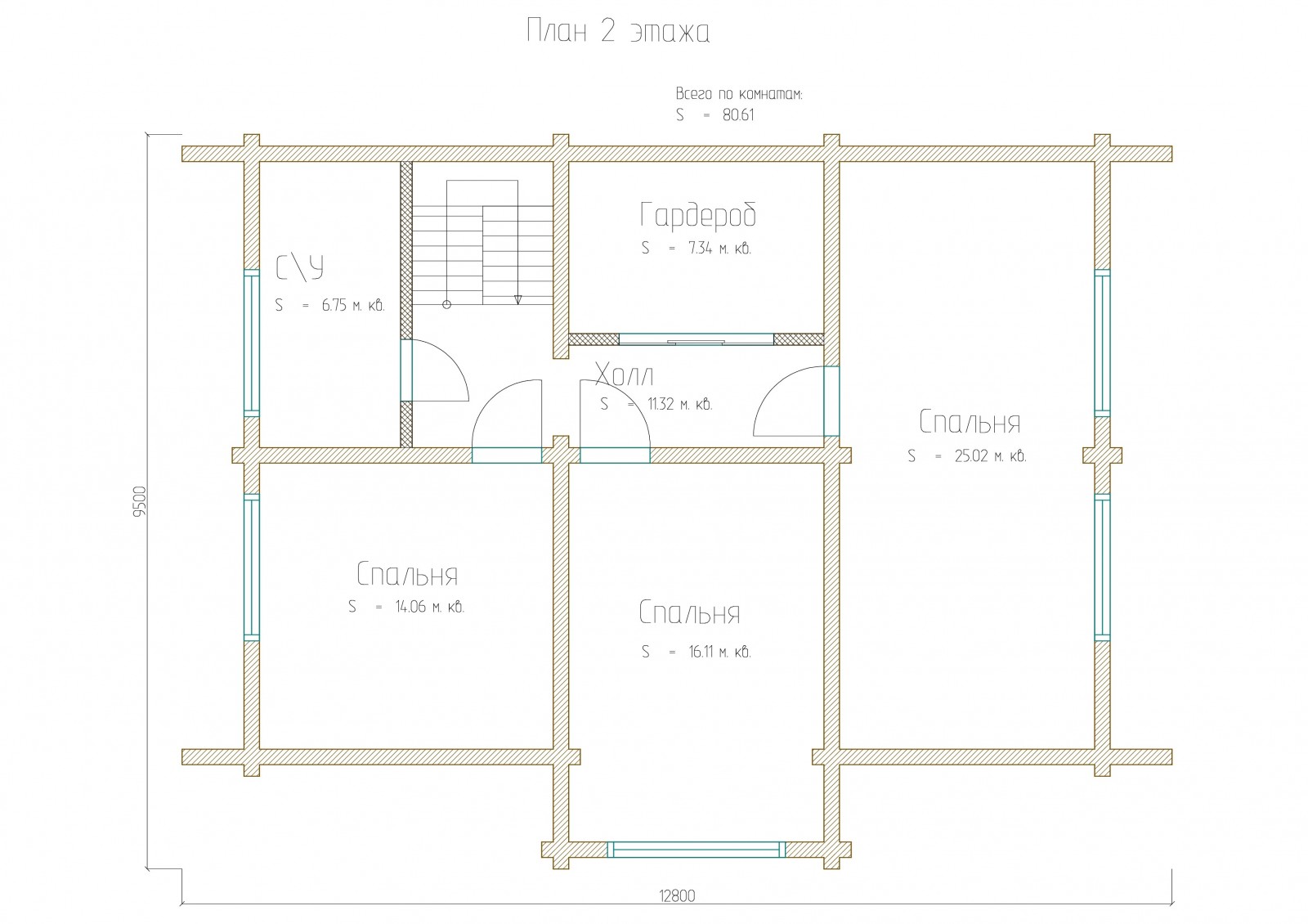 Площадь 2 этажа: 80.61 м