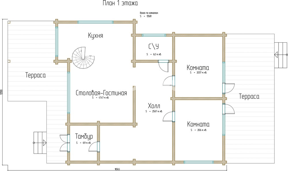 Площадь 1 этажа: 130 м