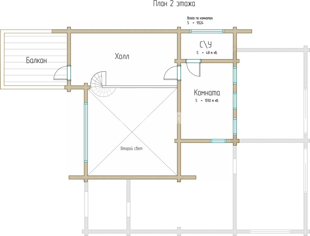Площадь 2 этажа: 93 м