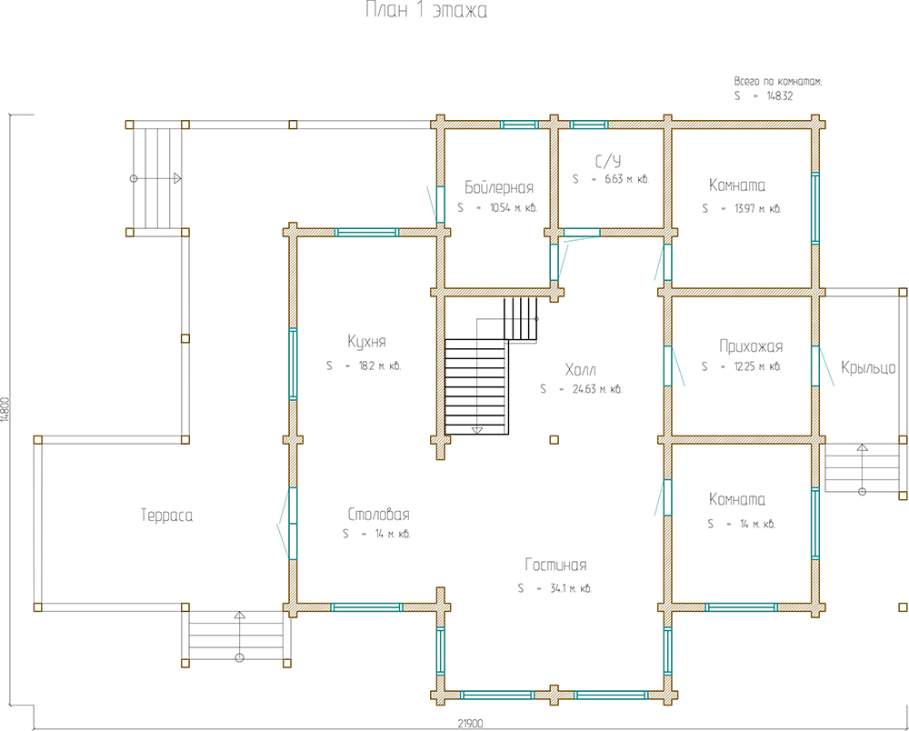 Площадь 1 этажа: 148.32 м